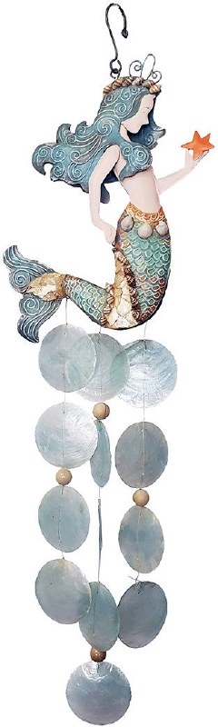 10" Blue Capiz and Metal Embellished Mermaid Wind Chime