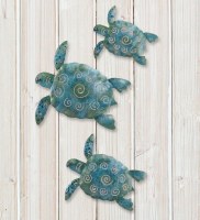 A top seller for over 10 years running. This versatile Wall Decor is perfect for the bathroom or any room in a coastal setting, even outdoors! Multiple hangers on the back allow the piece to hang in various ways. Great combination of blue and green coastal colors, constructed of metal.