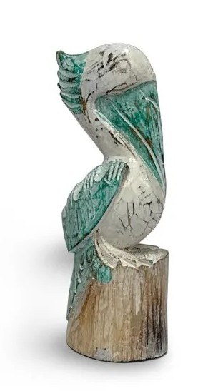 10" Small Multicolor Wood Pelican on a Piling Statue