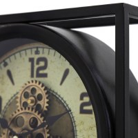 This industrial gear clock features a square frame surrounding a round timepiece with large, easy-to-read numbers.
