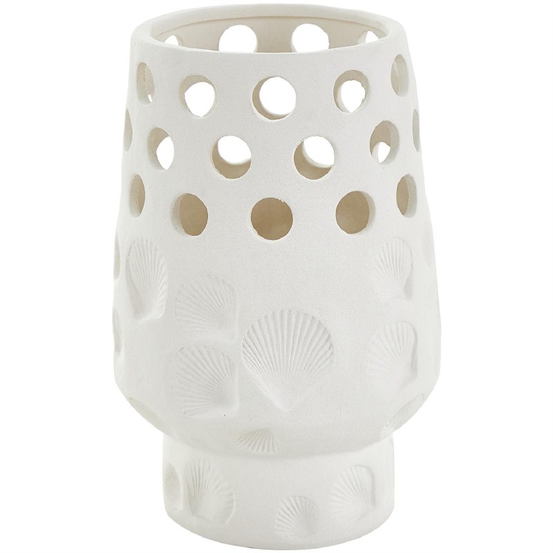 10" White Scallop Shell and Openwork Ceramic Hurricane