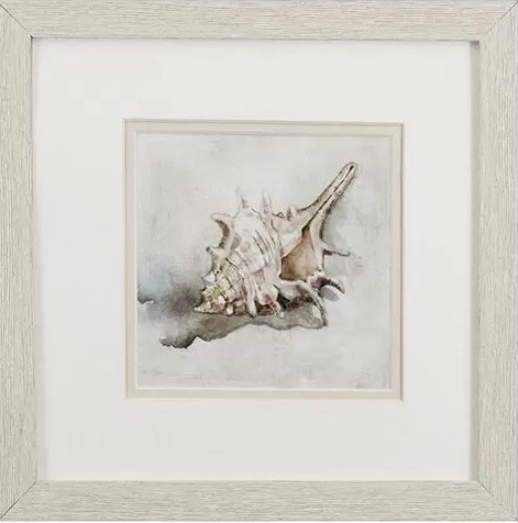11" Square Off White Murex Shell in Tan Frame Under Glass