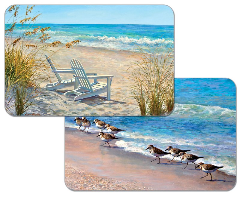 11" x 17" Oceanview Chairs and Sandpipers Reversible Microban Placemat
