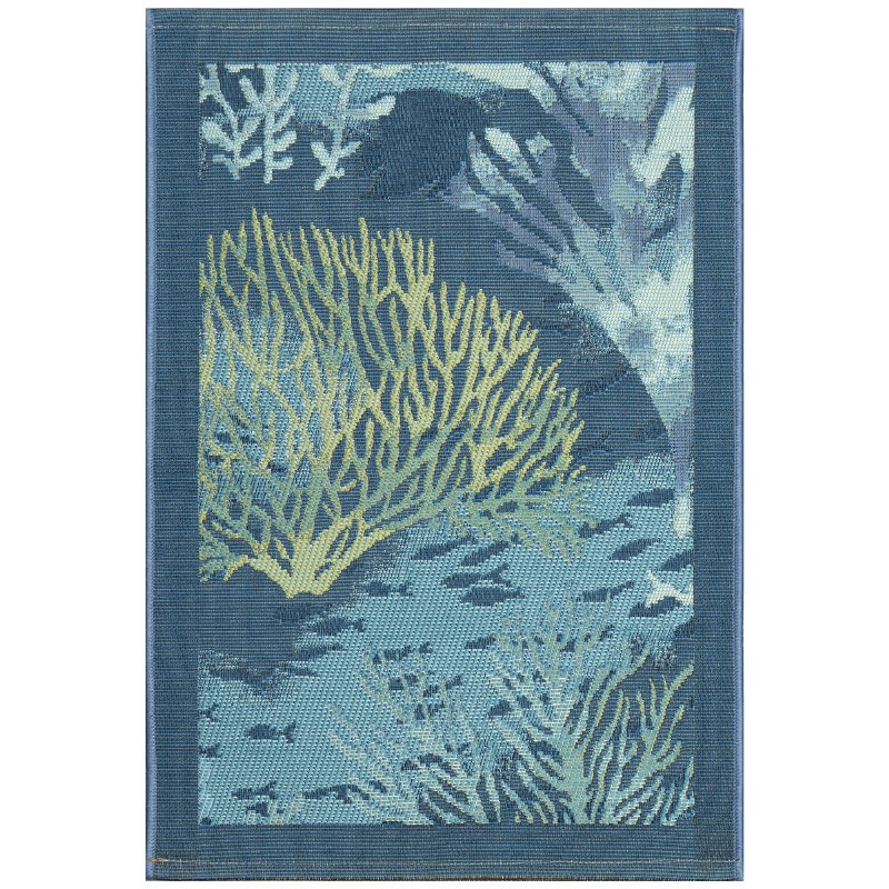 Featuring a contemporary under the sea plant life scene in aquatic colors. Made in Egypt from 75% polypropylene/25% polyester, reinforced with a latex non-skid backing, the performance Esencia Collection is Power Loomed to create decorative, intricate designs with a broad color spectrum and a high-quality finish. The material is flatwoven, low profile, durable, weather resistant, UV stabilized for enhanced fade resistance, durable and ideal for those high traffic areas such as your patio, deck, sunroom, kitchen, bathroom, entryway, hallway, living room and bedroom making this the ideal indoor or outdoor rug. Detailed patterns are offered in an eclectic mix of styles ranging from tropical, coastal, geometric, novelty, contemporary and traditional designs; making these perfect accent rugs for your home. Limiting exposure to rain, moisture and direct sun will prolong mat life.