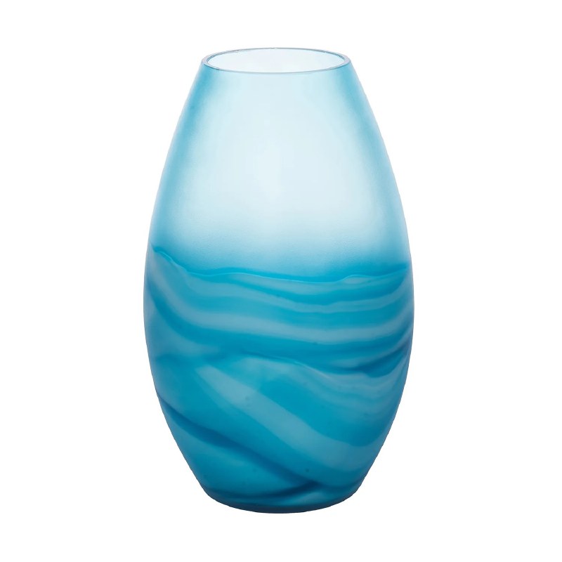 Make a bold statement with this large blue frosted glass vase. Its striking color and frosted finish create a captivating centerpiece for floral arrangements or a standalone decorative accent, adding a touch of sophistication to any room.