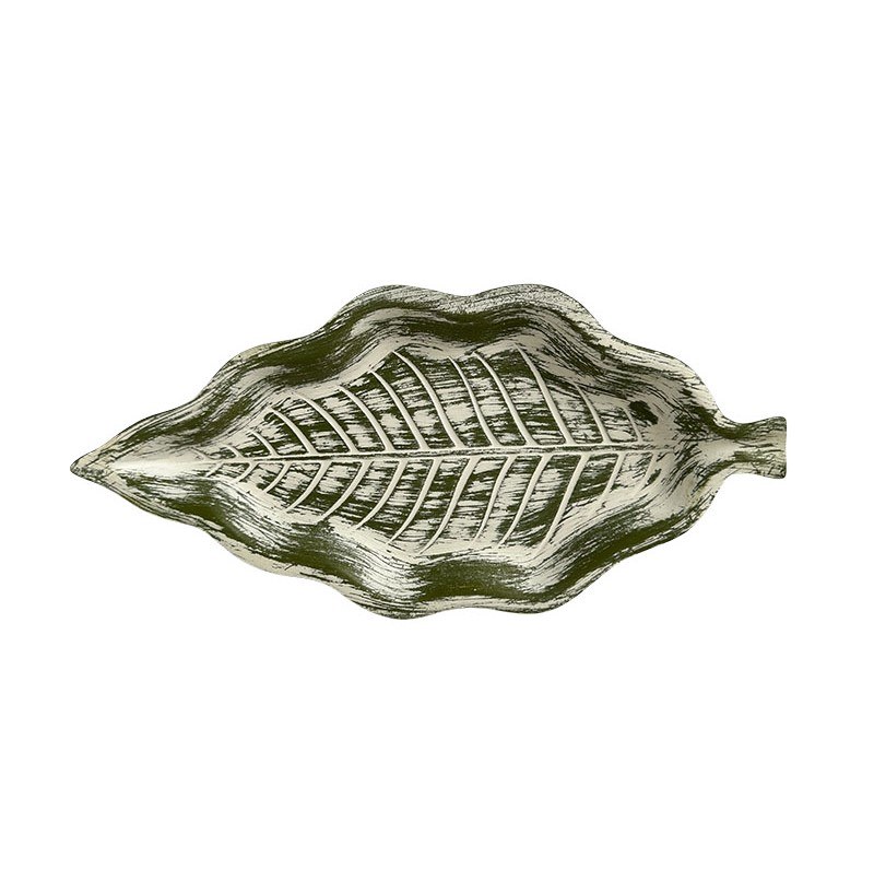 Enhance your coastal decor with this green and white tropical leaf dish. The vibrant design adds a refreshing touch, making it perfect for displaying items in any space.