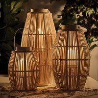 Natural Artisanal Design: This lantern showcases meticulously woven bamboo strips in a beautiful blonde finish, creating an intricate pattern that casts enchanting light reflections when illuminated.