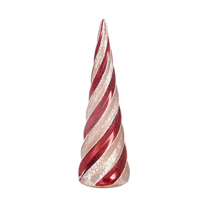 Infuse your holiday decor with a sweet and festive touch with the 12 inch Peppermint Twist Glass Tree. This charming tree figurine with peppermint swirls adds a playful and whimsical element to your Christmas display.