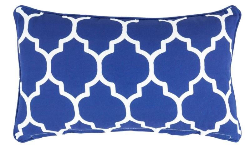 12" x 20" Blue Tiles Outdoor Pillow With Matching Piping