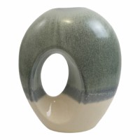 14" Green, Blue, and White Ceramic Vase With a Hole
