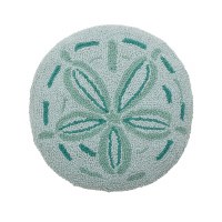 14" Round Green Sand Dollar Shape Decorative Coastal Hooked Pillow