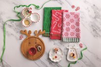 Bring whimsical holiday charm to your entertaining with this adorable 14" x 11" carved pinewood reindeer serving board featuring antlers and a sweet face design. The 2-piece set includes a red ceramic dip bowl that fits perfectly in the reindeer's "nose" area, creating a playful and functional serving piece. Perfect for holiday parties, Christmas appetizers, or adding festive fun to any gathering.