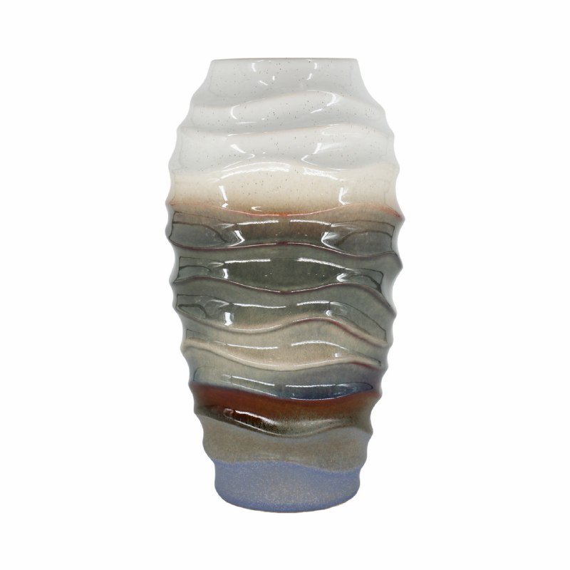 The Ivory, Blue, and Green Wavy Ceramic Casual Modern Home Vase features a striking wavy design that beautifully blends soft ivory with vibrant blue and green tones. Crafted from high-quality ceramic, this vase adds a touch of contemporary elegance to your decor. Perfect for displaying fresh or faux flowers, or as a standalone accent piece, it enhances mantles, tabletops, or shelves with its artistic flair. Ideal for both casual and modern styles, this vase brings a refreshing pop of color and texture to any space.