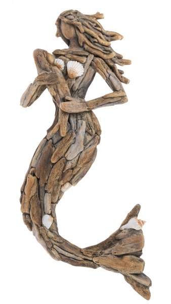 Driftwood and polyresin vertical mermaid coastal wall art plaque