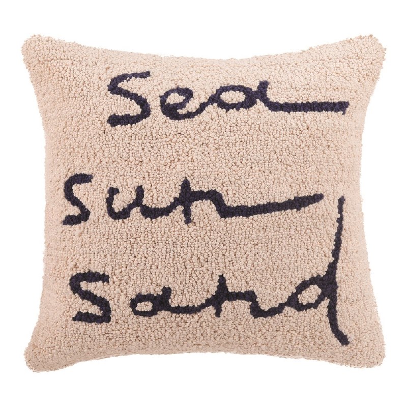 Our Sea Sand Sun Hooked Pillow is a beautiful, vibrant pillow that will make any space feel cozy. The pillow comes with durable stitching and vivid colors to add energy to your home. Toss this throw pillow on a sofa, bed, or chair and change the mood of a room!