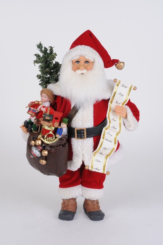 The Lighted Vintage Gift Bag Santa is great for any shelf, mantle, and countertop. The quality is unmatched with this decorative piece’s hand-painted face, inset eyes, unique fabric, and detailed accessories. With his beautifully lit tree, vintage design, and incredible detail; this Christmas piece is sure to add character and style to any home. Tree is battery operated. This piece takes 2 CR2032 batteries.