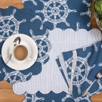 No sand necessary. Bring easy, nautical vibes to your home with the Maritime tabletop collection. With a unique design comprised of sketched sailboat wheels, along with an intricate quilted design, this tabletop collection looks great in any nautical themed setting. Reverse to a blue and white ticking pattern for additional styling options. Crafted of cotton and machine washable for easy care. Love this pattern? Maritime is also available in our bedding collection.