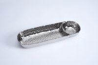 17" Silver Rigid Oval Narrow Chip and Dip Tray by Pampa Bay