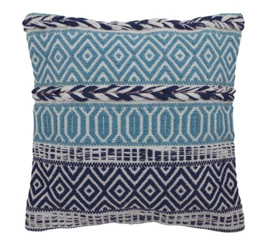 17" Square Aqua and Navy Woven Pattern Outdoor Pillow