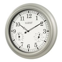 La Crosse Technology's ® Indoor/Outdoor Wall Clock is weather resistant and tracks temperature and humidity. This clock features an 18" metallic finish frame that easily fits into any home or office decor.