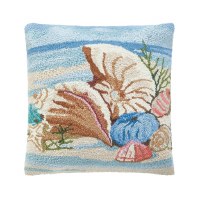 18" Sq Seashells on the Beach Decorative Coastal Hooked Pillow
