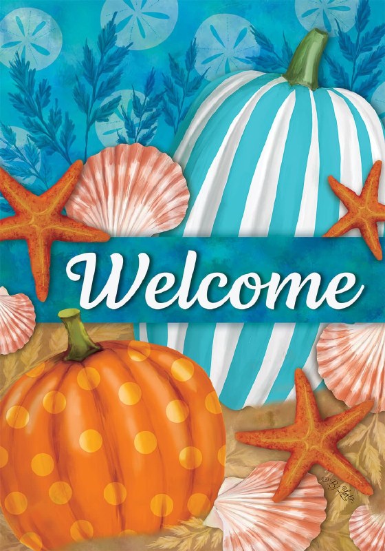 18" x 12" "Welcome" Beachy Autumn Mini Coastal Fall & Thanksgiving Garden Flag