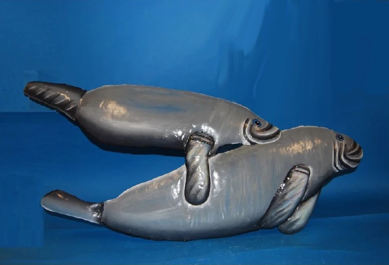 18" x 42" Gray Manatee With Baby Coastal Metal Wall Art Plaque