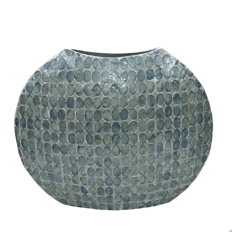 Elevate your home decor with the stunning 19" Blue Mosaic Dots Capiz Vase. This eye-catching vase features a vibrant mosaic design composed of genuine Capiz shells in a captivating array of blue hues, creating a unique and artistic look. Perfect for displaying fresh flowers or as a standalone decorative piece, this vase adds a touch of coastal elegance to any room. Its versatile style complements various interior designs, making it a beautiful accent for tabletops, shelves, or entryways. Embrace the charm of coastal living with this exquisite Capiz vase!