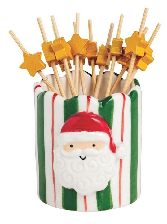 2" Ceramic Santa Pick Holder With Picks by Mud Pie