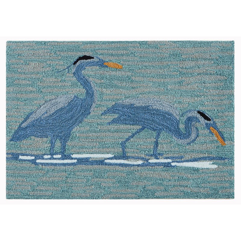 This beautiful mat showcases the majesty of two blue herons on water, perfect for any home or front porch, in blue. Hand hooked of weather-resistant fiber, this collection is a blend of comfort, softness and durability. Frontporch is remarkably easy to clean and treated for added fade resistance. Limiting exposure to rain, moisture and direct sun will prolong mat life.