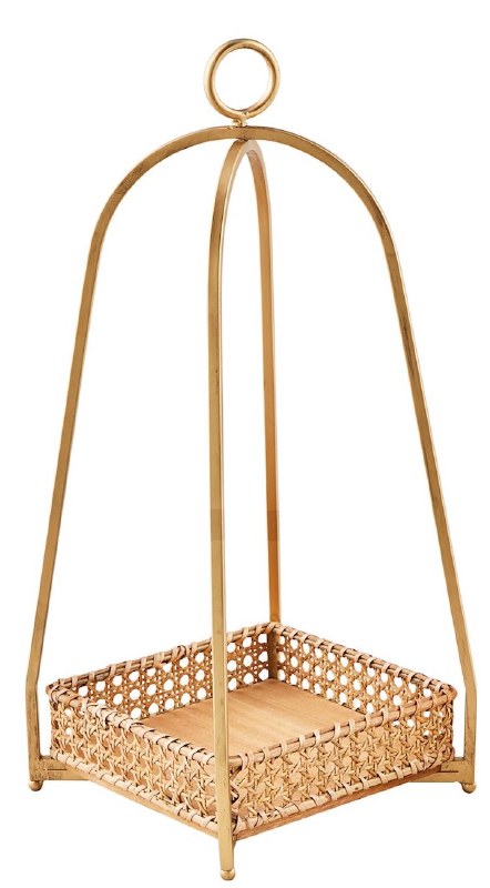 Bronze finished metal lantern with cane candle tray.
