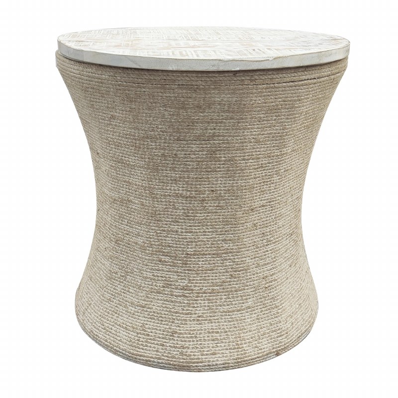 20" Round Whitewash Wood Top and Jute Base End Table