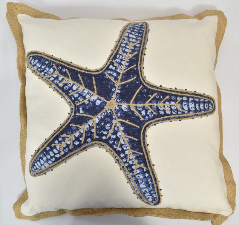 20" Sq Blue Starfish and Jute Rope Decorative Pillow