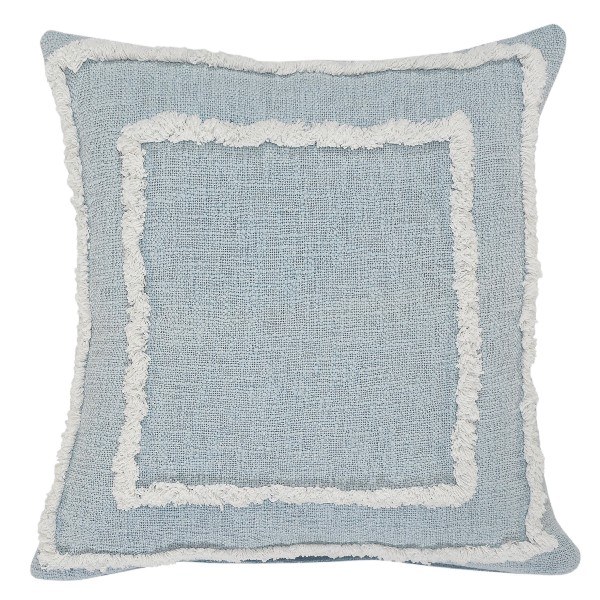 20" Square Winter Sky Blue and White Tufted Fringe Pillow