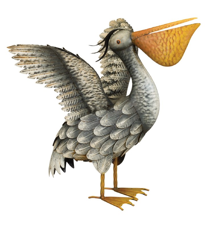 Our Pelican Decor is an all metal bird statue that features realistic coloring with handcrafted feather detail and a powder coated finish, making it perfect for indoor/outdoor use.
