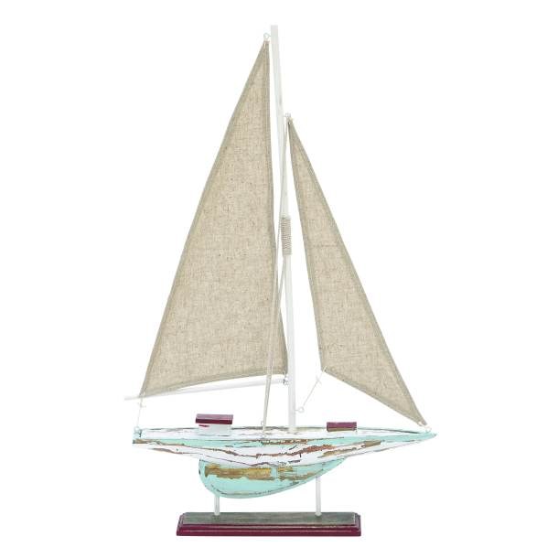 22" Weathered Aqua & White Wood Sailboat