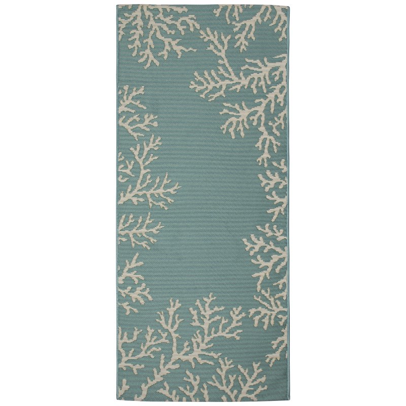 Features a vibrant aqua blue background with an ivory coral motif border. This classic subtle tropical design will effortlessly complement any space inside or outside your home. Made in Egypt from 75% polypropylene/25% polyester, reinforced with a latex non-skid backing, the Esencia Collection is Power Loomed to create intricate designs with a broad color spectrum and a high-quality finish. The material is flatwoven, low profile, weather resistant, UV stabilized for enhanced fade resistance, durable and ideal for those high traffic areas such as your patio, sunroom, kitchen, entryway, hallway, living room and bedroom making this the ideal indoor or outdoor rug. Detailed patterns are offered in an eclectic mix of styles ranging from tropical, coastal, geometric, contemporary and traditional designs; making these perfect accent rugs for your home. Limiting exposure to rain, moisture and direct sun will prolong rug life.