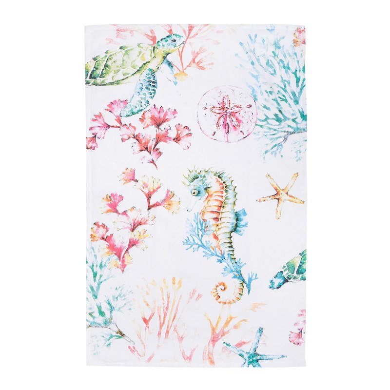 Indulge in some sea-themed fun with the Chandler Cove Printed Terry Kitchen Towel. This cotton towel features beautiful sea life in vibrant shades of warm red and orange and cool ocean blues. Perfect for adding a splash of coastal-inspired color to any kitchen.