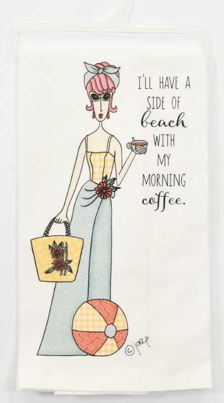 27" Sq "I'll Have a Side of Beach With My Morning Coffee" Flour Sack Kitchen Towel
