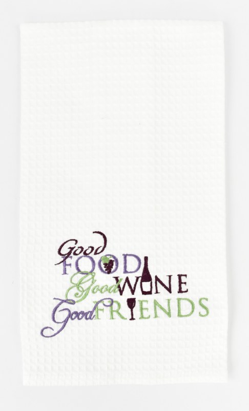 27" x 18" Multicolor Good Food, Wine, Friends Kitchen Towel