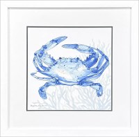 29" Sq Indigo Crab Coastal Print in a White Frame Under Glass