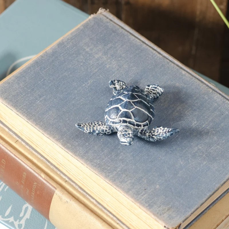 Enhance your coastal decor with the Dark Blue Polyresin Coastal Sea Turtle Figurine. Featuring a rich dark blue finish, this elegant sea turtle figurine adds a sophisticated touch to any space. Crafted from durable polyresin, it captures intricate details and a lifelike appearance, making it a perfect addition to beach-themed or nautical interiors. Ideal for display on shelves, tables, or mantels, this figurine combines beauty and resilience, bringing a serene, ocean-inspired charm to your home.
