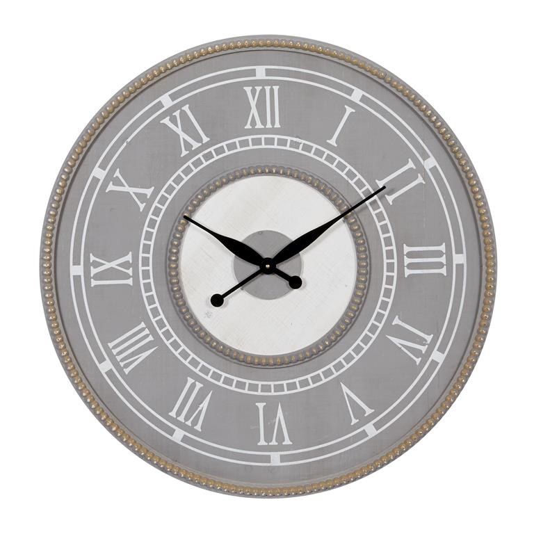 30" Round Distressed Gray and White Beaded Rim Wall Clock