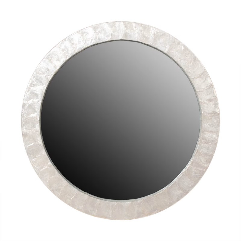 Infuse coastal sophistication with this captivating accent mirror. The round frame is crafted with a stunning mosaic of capiz shells, each with a delicate, translucent sheen that reflects light with a soft, natural glow. Sustainably sourced from Indonesia's shores, this mirror merges organic beauty with subtle glamour. Designed with D-rings for effortless wall mounting, it's ideal over a dressing table or as an entryway feature for the final look before stepping out.