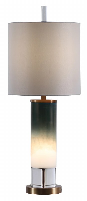 The Crestview Collection Wyatt Table Lamp With Nightlight brings shine and character to your living space. The glass cylinder body has a rich turquoise glaze, with a lower nightlight to give off just the right amount of glow. Clear crystal forms a pedestal base, while the cylinder shade of white linen gives all the warm light you need.