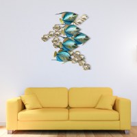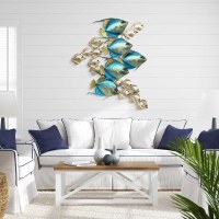 36" Blue and Bronze School of Angelfish Vertical Coastal Metal Wall Art Plaque