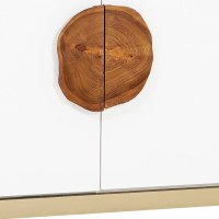 The Slice 2-Door Cabinet gets its name from the sliced sections of teak that form the handles on its two doors. These pieces of stunning, natural timber display their beautiful and unique grain against the fresh, hand-applied white finish of the cabinet and are complemented by the soft Champaign Gold detailing on the supporting frame and legs. The Slice is an ideal piece for adding a subtle natural or coastal flavor to an interior, while providing discreet storage.