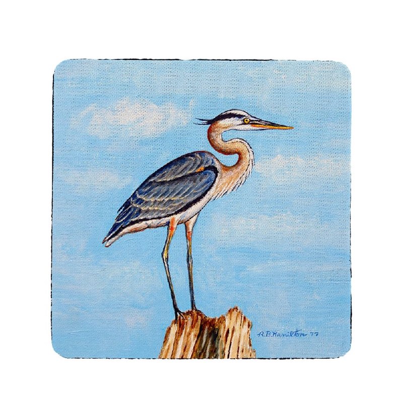 4" Square Blue Heron on Stump Coaster