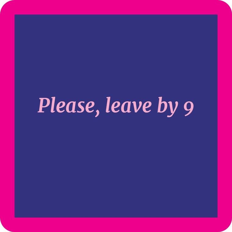 4" Square Blue With Hot Pink Border Please Leave By 9 Coaster