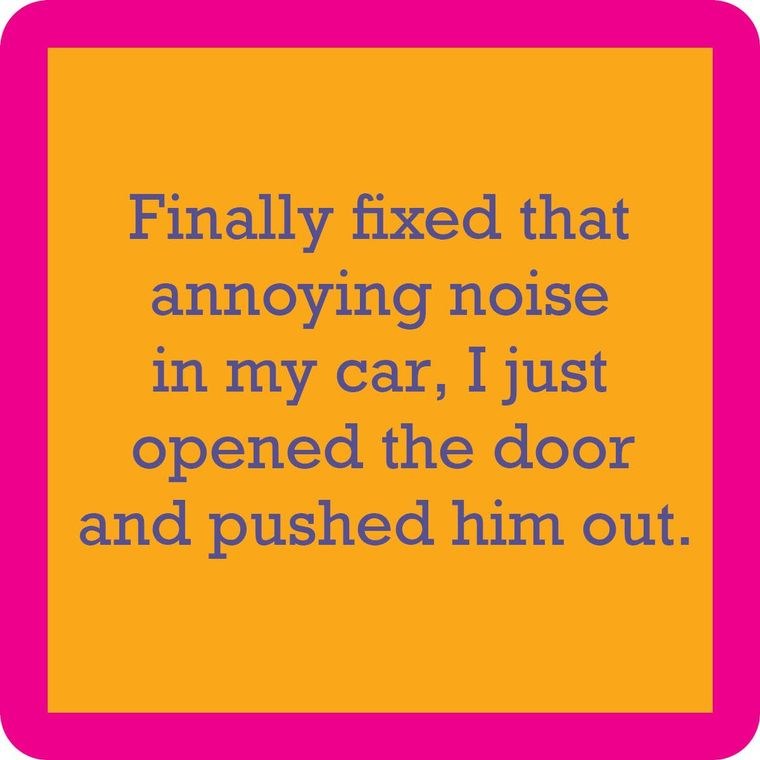 4" Square Orange With Pink Border Pushed Him Out Coaster
